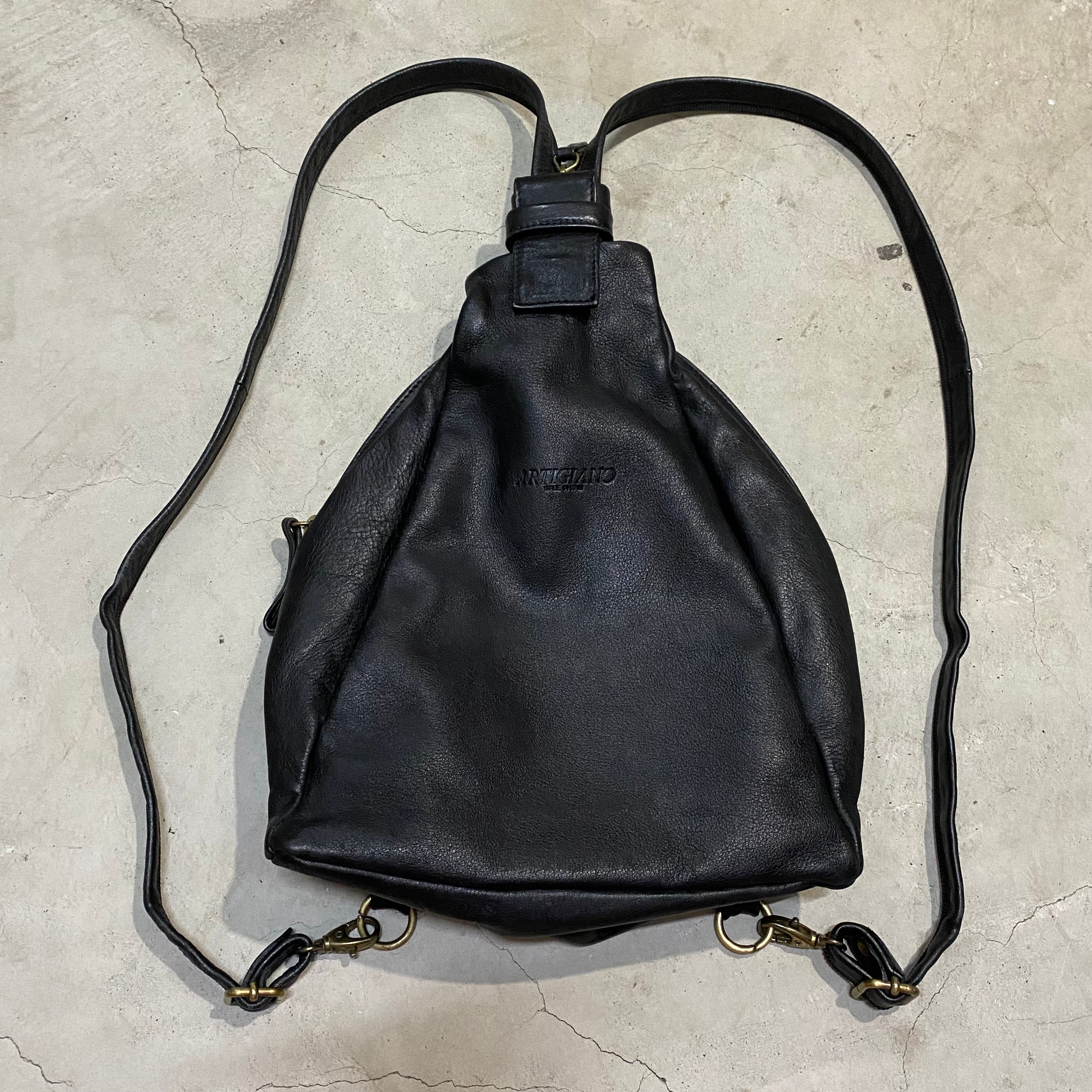 old 2way leather bag sling bag × backpack made in italy