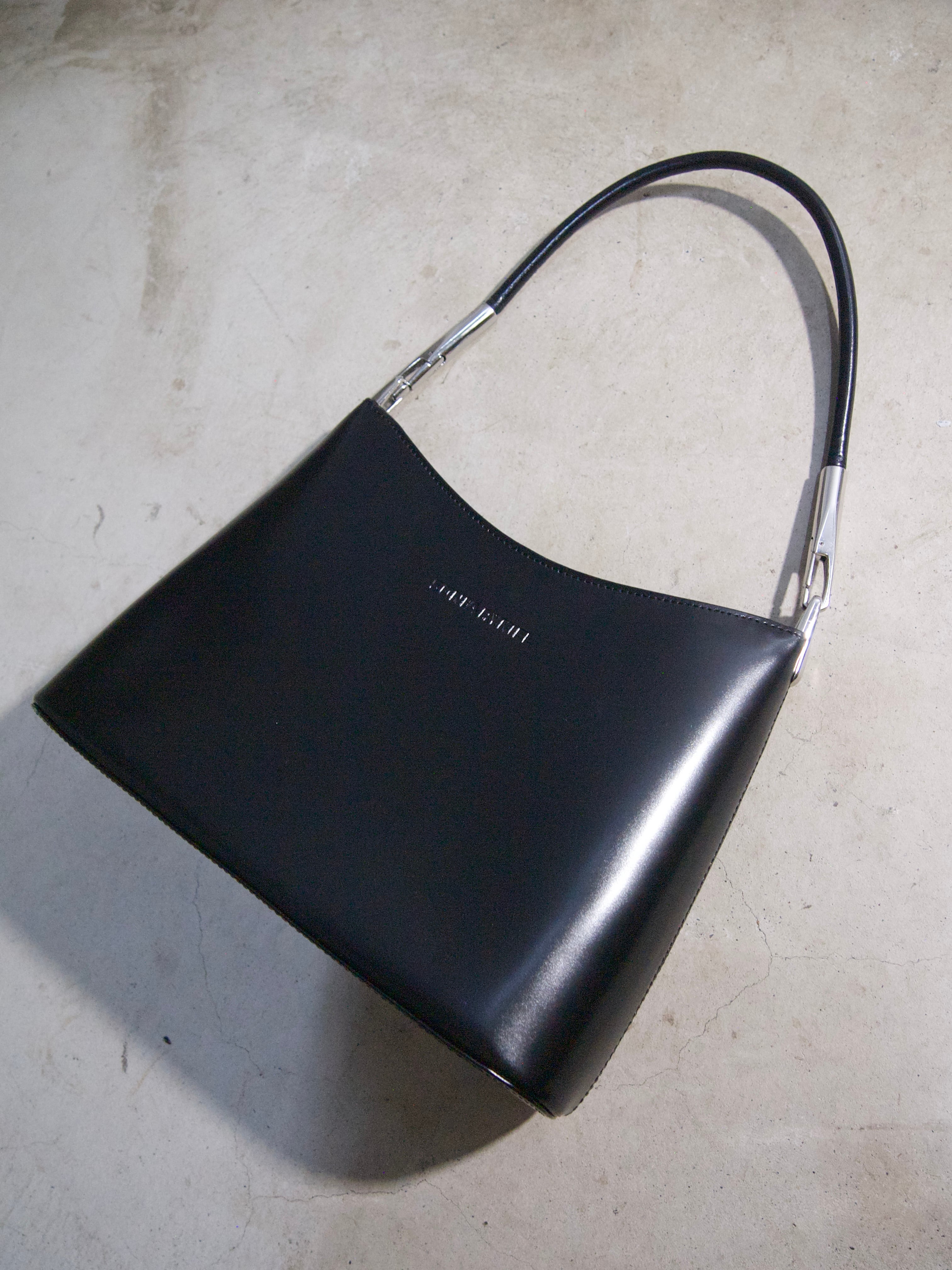 独特な金具が特徴的で、シンプルなスタイリングにアクセントを加える一品です。