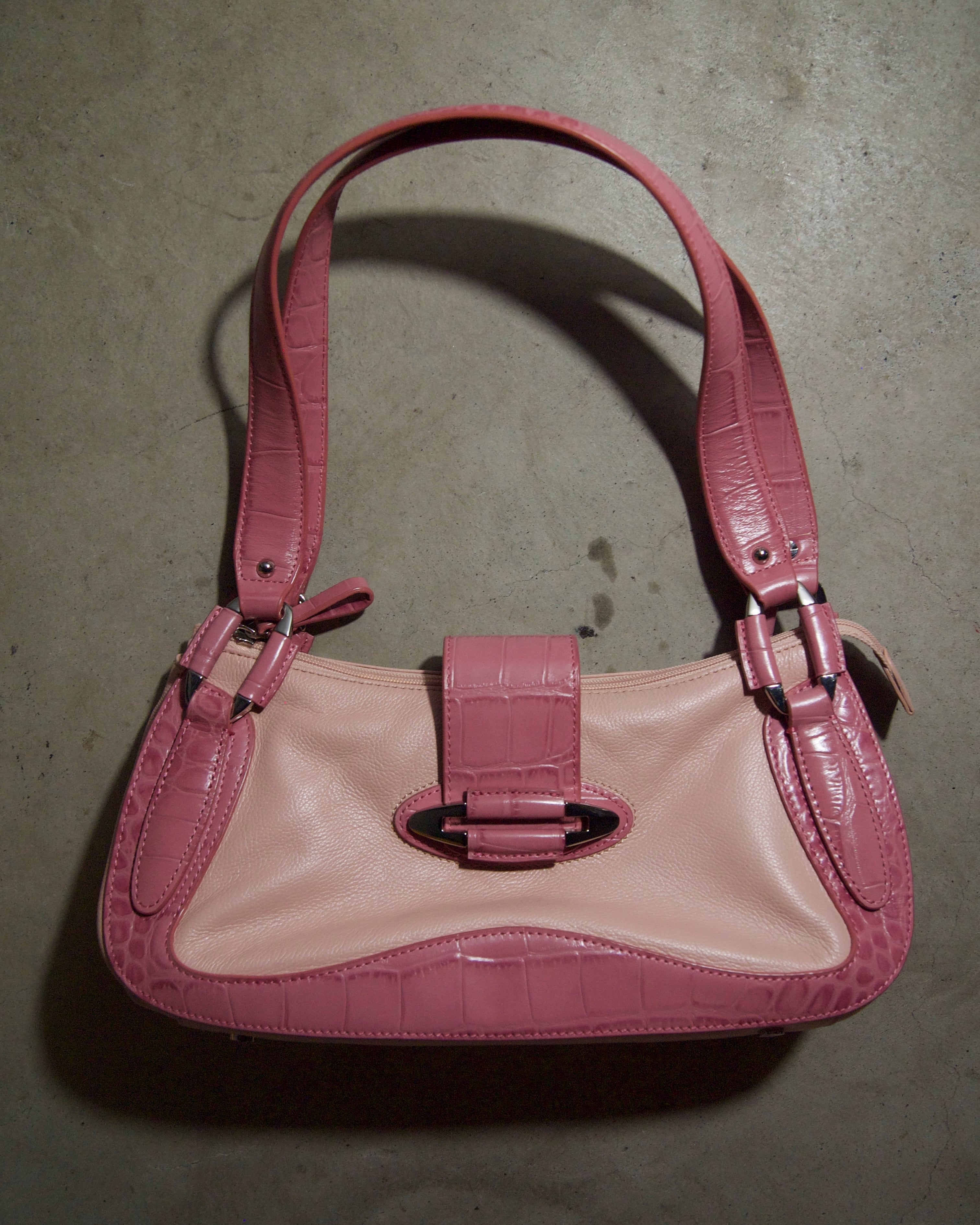 Y2K Croc Accent Pink Shoulder Bag
