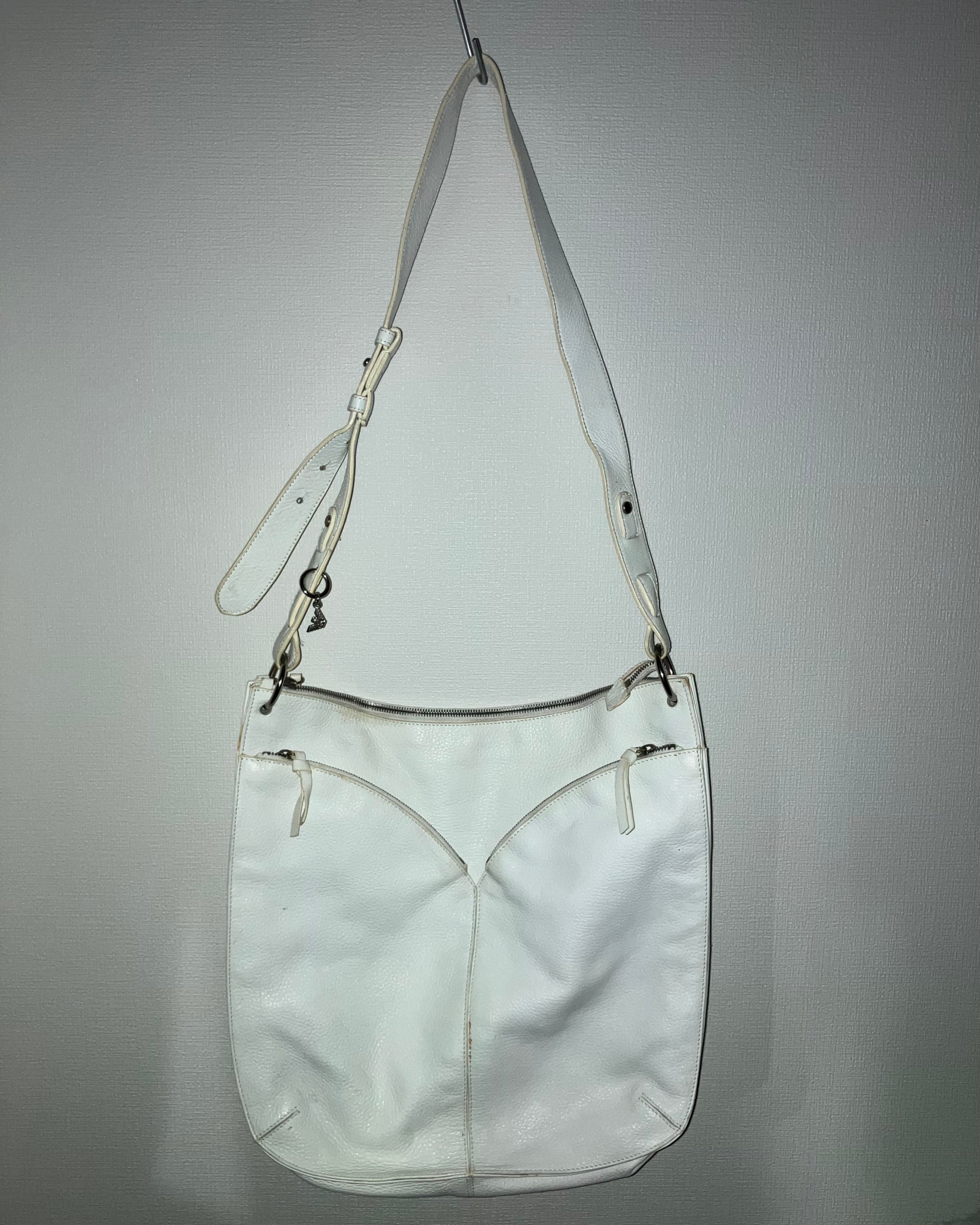 ホワイトレザーショルダーバッグ。